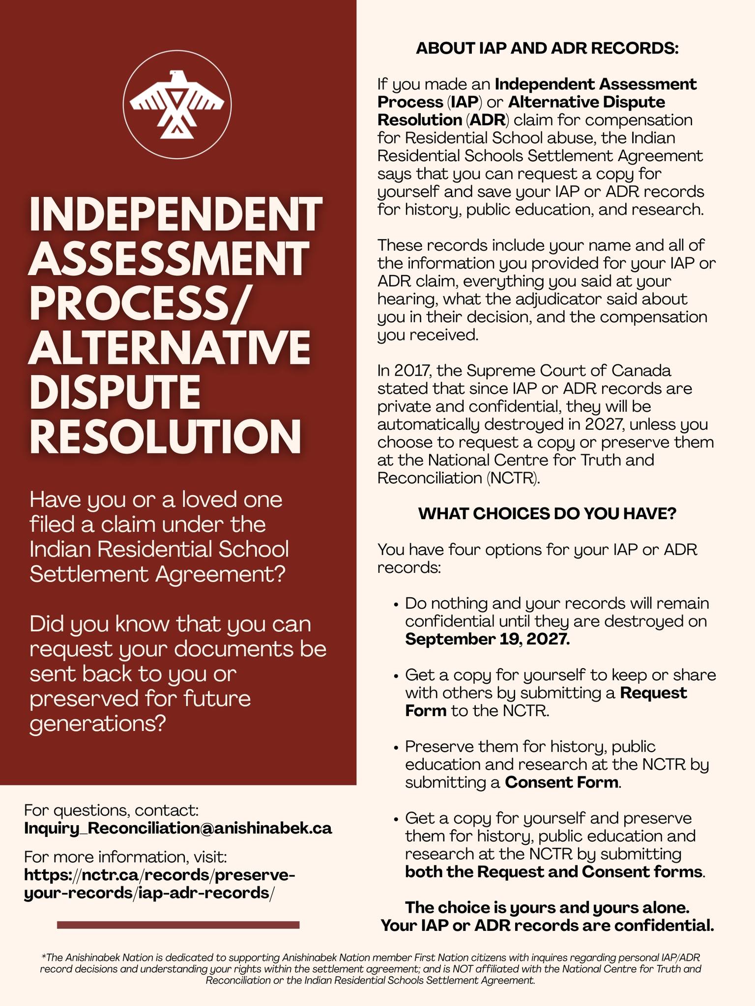 For more information, visit: https://nctr.ca/…/preserve-your-records/iap-adr-records/